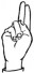 На ћирилици написано ДЕНИС ШКОРИЋ састоји се из 11 слова [?]. Исписано ћириличном једноручном азбуком за глувонеме: